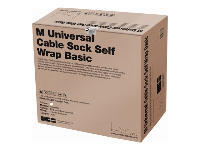 Produktbeskrivning Multibrackets M Universal Cable Sock Self Wrap Basic - kabelsocka Produkttyp Kabelsocka Dimensioner (BxDxH) 1.9 cm 1.9 cm Längd 50 m Vikt 2.5 kg Produktmaterial Polyester Färg Vit Tillverkarens garanti 5 års garanti -