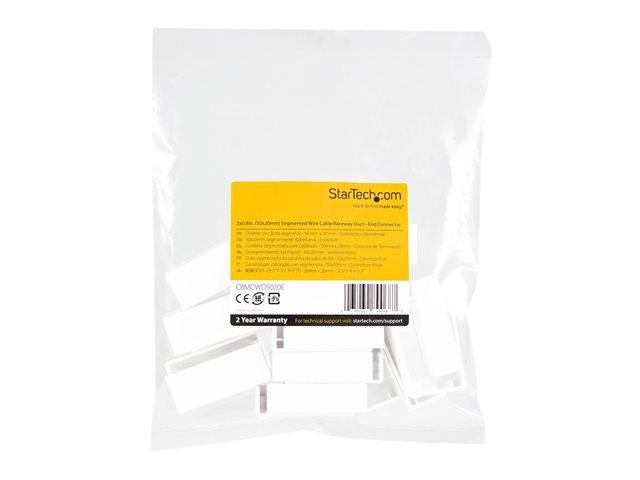 Produktbeskrivning StarTech.com 20 Pack Cable Raceway End Cap for CBMCWD5020, Cable Management Accessories, Channel Raceway Fitting End Cap, Cable Raceway Connectors, Wiring Duct End Piece, UL Listed - ABS Plastic, UL94 HB (CBMCWD5020E) - kabelrännas ändsockel - TAA-kompatibel Produkttyp Kabelrännas ändsockel Förpackad kvantitet 20 (specificationerna gällerenskild post) Dimensioner (BxDxH) 5.39 cm x 1.591 cm x 2.177 cm Vikt 4 g Produktmaterial ABS (acrylonitrile butadiene styrene) Färg Vit TAA-kompatibel Ja Tillverkarens garanti 2 års garanti Designat för P/N: CBMCWD5020 -
