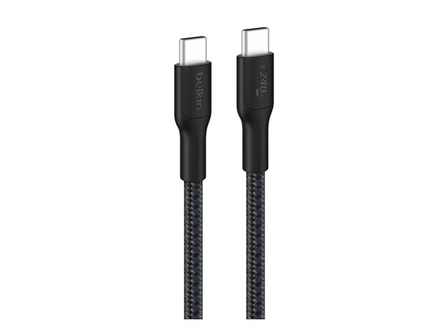 Produktbeskrivning Belkin BoostCharge Pro - USB typ C-kabel - USB-C till USB-C - 3 m Typ USB typ C-kabel Egenskaper USB-strömförsörjning (240W), flätad kabel Kabellängd 3 m Kontaktdon 24 pin USB-C - hane Kontakt (andra änden) 24 pin USB-C - hane Färg Svart Tillverkarens garanti 2 års garanti -