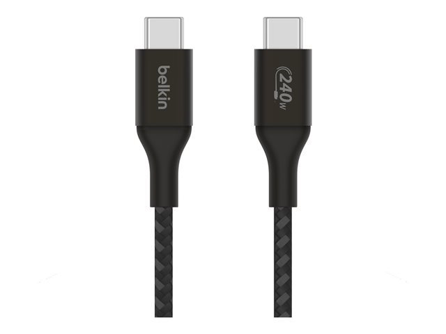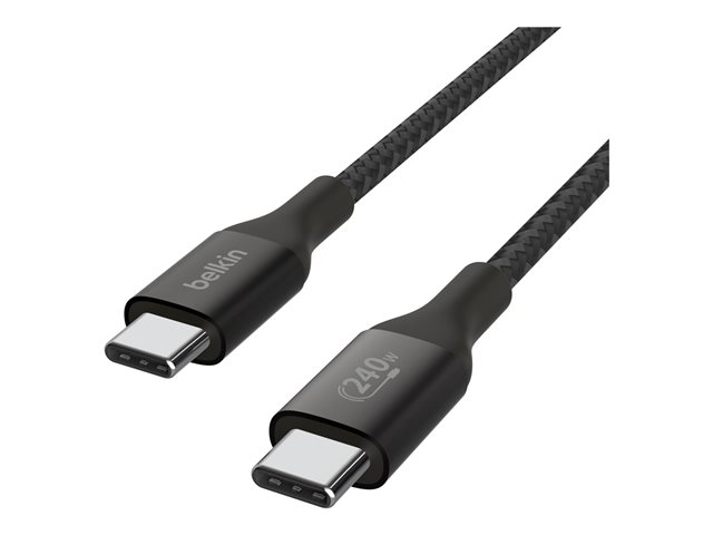 Produktbeskrivning Belkin BoostCharge - USB typ C-kabel - USB-C till USB-C - 1 m Typ USB typ C-kabel Egenskaper Stöd för strömleverans på upp till 240 W, overheating protection, Power Delivery 3.1-teknik (PD 3.1), tål 30 000 böjar, 10 000 kontakttester Kabellängd 1 m Kontaktdon 24 pin USB-C - hane Kontakt (andra änden) 24 pin USB-C - hane Standarder som följs USB / USB 2.0 Färg Svart Tillverkarens garanti 2 års garanti -