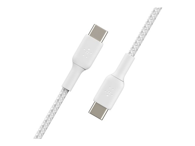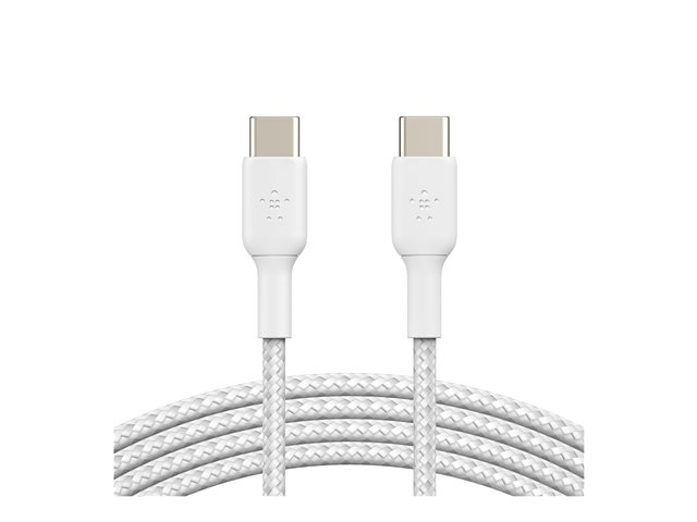 USB-C (hane) till USB-C (hane) - USB 2.0 - 3 A - 2 m - USB Power Delivery (60W), flätad kabel - vit