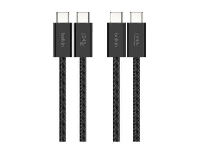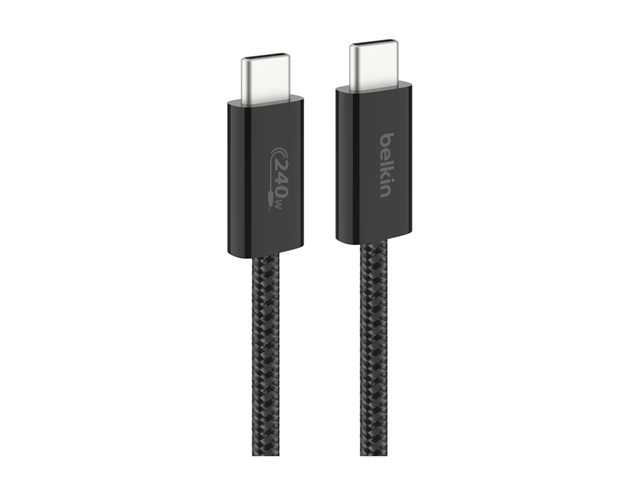 Produktbeskrivning Belkin BoostCharge - USB typ C-kabel - USB-C till USB-C - 1.5 m Typ USB typ C-kabel Förpackad kvantitet 2 (specificationerna gällerenskild post) Egenskaper USB-strömförsörjning (240W), flätad kabel, trasselfri, klarar mer än 100.000 böjningar, livslängd 10000 anslutningar Kabellängd 1.5 m Kontaktdon 24 pin USB-C - hane Kontakt (andra änden) 24 pin USB-C - hane Märkspänning DC 48 V Märkström 5 A Färg Svart Tillverkarens garanti 2 års garanti -