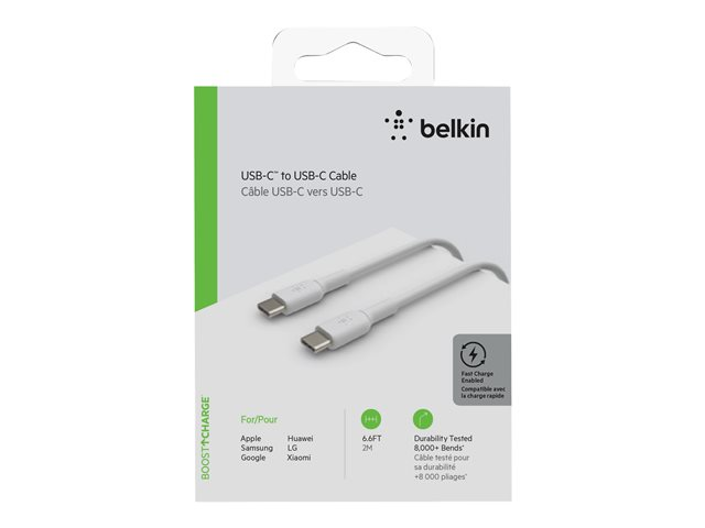 Produktbeskrivning Belkin BoostCharge - USB typ C-kabel - USB-C till USB-C - 2 m Typ USB typ C-kabel Egenskaper Synkronisering och laddning Kabellängd 2 m Kontaktdon 24 pin USB-C - hane Kontakt (andra änden) 24 pin USB-C - hane Färg Vit Tillverkarens garanti 2 års garanti -