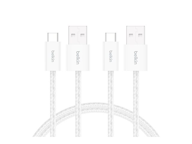USB (hane) till USB-C (hane) - 1.5 m - flätad kabel, USB Fast Charge (15W) - vit (paket om 2)