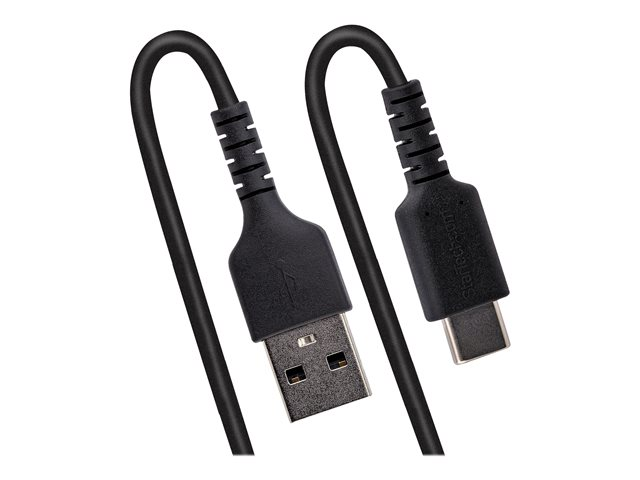 Produktbeskrivning StarTech.com 1 m USB-A till C-laddningskabel, kraftig spiralkabel för snabb laddning och synkronisering, USB 2.0 A till USB Type-C-kabel av hög kvalitet, robust aramidfiber, slitstark hane till hane USB-kabel - USB typ C-kabel - USB till USB-C - 1 m Typ USB typ C-kabel Teknik Skärmad Egenskaper Lindad, synkronisering och laddning, halogenfri, Quick Charge Kabellängd 1 m Kontaktdon 4-stifts USB typ A - hane Kontakt (andra änden) 24 pin USB-C - hane Märkström 3 A Standarder som följs USB / USB 2.0 Färg Svart Tillverkarens garanti Begränsad livstidsgaranti -