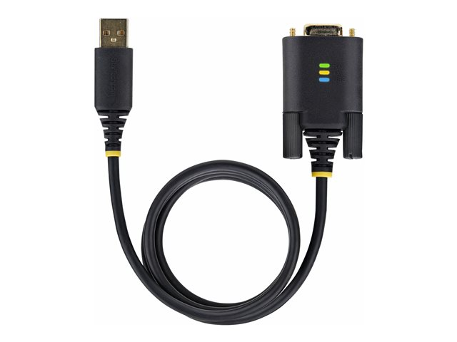 Produktbeskrivning StarTech.com 10ft (3m) USB to Serial Adapter Cable, Interchangeable DB9 Screws/Nuts, COM Retention, USB-A to DB9 RS232, FTDI IC, Level-4 ESD Protection, Windows/macOS/ChromeOS/Linux - Rugged TPE Construction (1P10FFC-USB-SERIAL) - USB / seriell kabel - USB till DB-9 - 3 m Typ USB / seriell kabel Egenskaper EMI/RFI-skydd, skydd mot elektrostatisk urladdning (ESD), FTDI-styrenhet, LED-statusindikator, TPE-kontakthus, bussdriven Kabellängd 3 m Kontaktdon 4-stifts USB typ A - hane Kontakt (andra änden) 9 pin D-Sub (DB-9) - hane Standarder som följs USB / USB 2.0 Färg Svart Tillverkarens garanti 2 års garanti -