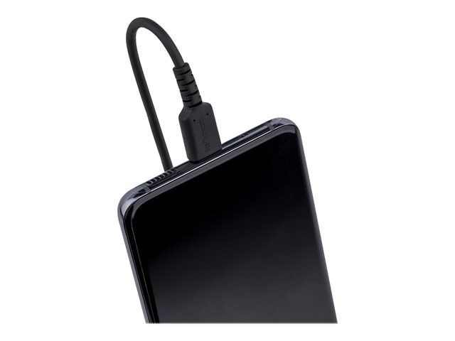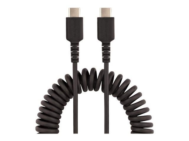 StarTech.com 1 m USB C-laddningskabel, kraftig USB-C-spiralkabel för snabb laddning och synkronisering, USB 2.0 Type-C-kabel, robust aramidfiber, slitstark hane till hane USB-kabel, svart