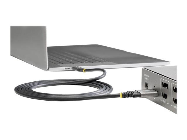 Produktbeskrivning StarTech.com 1 m sidoskruvlåsande USB C-kabel 10 Gbps - USB-IF-certifierad USB-C-kabel - USB 3.1/3.2 Gen 2 Type-C kabel - 100 W (5 A) Power Delivery-laddning, DP alt-läge - Dubbel skruvlåsning - USB-C-kabel ladda/synkronisera - USB typ C-kabel - USB-C till USB-C - 1 m Typ USB typ C-kabel Egenskaper Stöd för 4K, EMI-skydd, stödjer DisplayPort alternativläges, strömförsörjningsteknologi, ytterdiameter 4,8 mm, 10 Gb datahastighet Kabellängd 1 m Kontaktdon 24 pin USB-C - hane - rakt/lockande Kontakt (andra änden) 24 pin USB-C - hane - rak Standarder som följs USB 3.2 Gen 2 / DisplayPort 1.4 /Thunderbolt 3 Färg Grå, svart Tillverkarens garanti 2 års garanti -