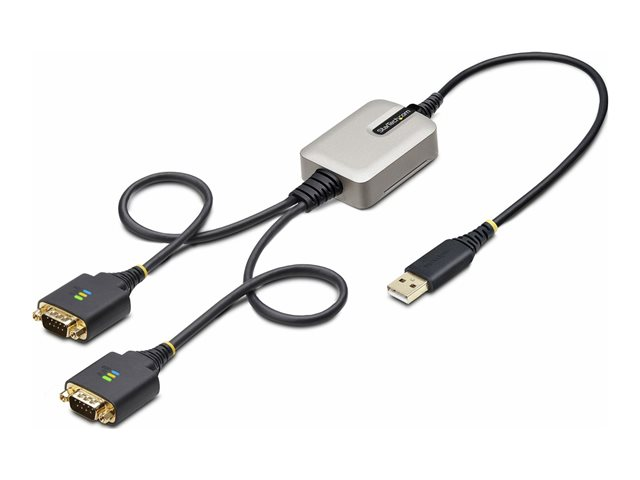 Produktbeskrivning StarTech.com 2ft (60cm) 2-Port USB to Serial Adapter Cable, Interchangeable DB9 Screws/Nuts, COM Retention, USB-A to DB9 RS232, FTDI, Level-4 ESD Protection, Windows/macOS/ChromeOS/Linux - Rugged TPE Construction (2P1FFC-USB-SERIAL) - USB / seriell kabel - USB till DB-9 - 60 cm Typ USB / seriell kabel Egenskaper EMI/RFI-skydd, skydd mot elektrostatisk urladdning (ESD), FTDI-styrenhet, LED-statusindikator, TPE-kontakthus, bussdriven Kabellängd 60 cm Kontaktdon 4-stifts USB typ A - hane Kontakt (andra änden) 2 x 9 pin D-Sub (DB-9) - hane Standarder som följs USB / USB 2.0 Färg Svart Tillverkarens garanti 2 års garanti -