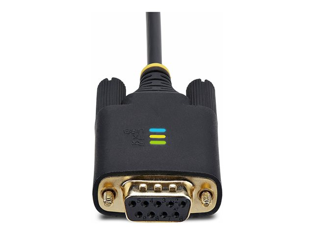 Produktbeskrivning StarTech.com 3ft (1m) USB to Null Modem Serial Adapter Cable, Interchangeable DB9 Screws/Nuts, COM Retention, USB-A to RS232, FTDI, Level-4 ESD Protection, Windows/macOS/ChromeOS/Linux - Rugged TPE Construction (1P3FFCNB-USB-SERIAL) - USB / seriell kabel - USB till DB-9 - 1 m Typ USB / seriell kabel Egenskaper EMI/RFI-skydd, skydd mot elektrostatisk urladdning (ESD), FTDI-styrenhet, LED-statusindikator, TPE-kontakthus, bussdriven Kabellängd 1 m Kontaktdon 4-stifts USB typ A - hane Kontakt (andra änden) 9 pin D-Sub (DB-9) - hane Standarder som följs USB / USB 2.0 Färg Svart Tillverkarens garanti 2 års garanti -
