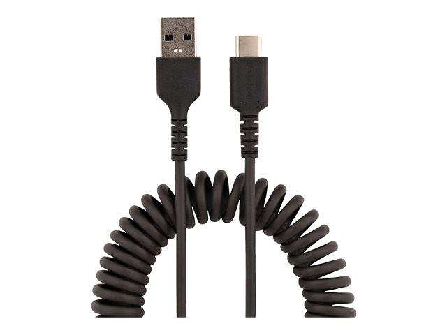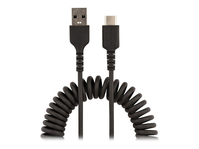 StarTech.com 50 cm USB-A till C-laddningskabel, kraftig spiralkabel för snabb laddning och synkronisering, USB 2.0 A till USB Type-C-kabel av hög kvalitet, robust aramidfiber, slitstark hane till hane USB-kabel