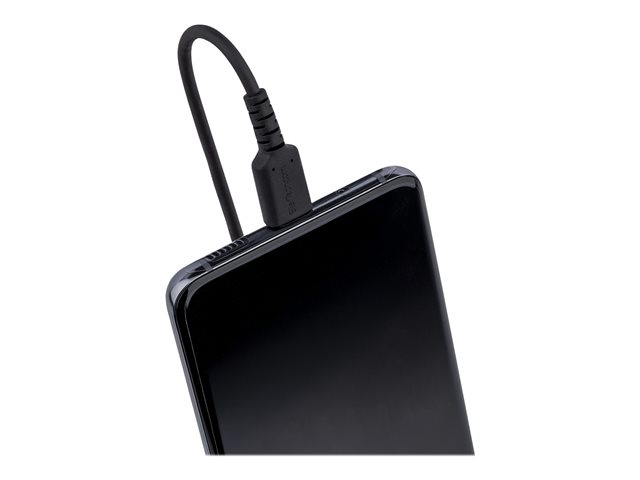 Produktbeskrivning StarTech.com 50 cm USB-A till C-laddningskabel, kraftig spiralkabel för snabb laddning och synkronisering, USB 2.0 A till USB Type-C-kabel av hög kvalitet, robust aramidfiber, slitstark hane till hane USB-kabel - USB typ C-kabel - USB till USB-C - 50 cm Typ USB typ C-kabel Teknik Skärmad Egenskaper Lindad, synkronisering och laddning, halogenfri, Quick Charge Kabellängd 50 cm Kontaktdon 4-stifts USB typ A - hane Kontakt (andra änden) 24 pin USB-C - hane Märkström 3 A Standarder som följs USB / USB 2.0 Färg Svart Tillverkarens garanti Begränsad livstidsgaranti -