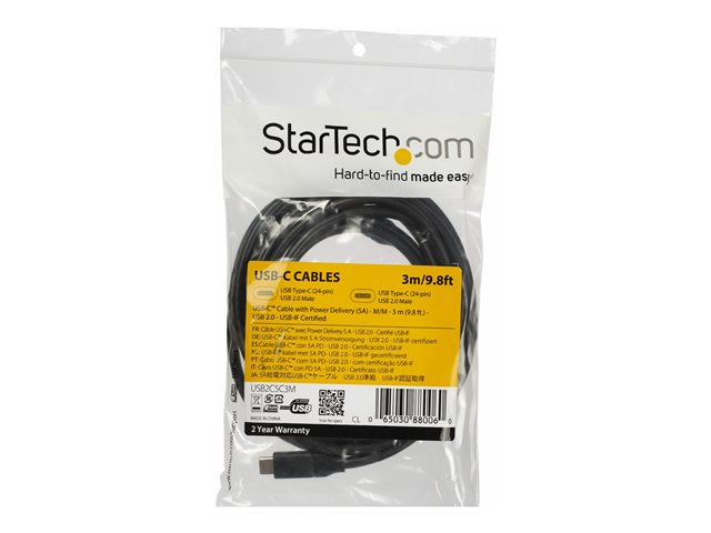 Produktbeskrivning StarTech.com USB C To USB C Cable - 10 ft / 3m - USB-IF Certified - 5A PD - USB 2.0 - USB Type C Charging Cable - USB C Fast Charge Cable (USB2C5C3M) - USB typ C-kabel - 24 pin USB-C till 24 pin USB-C - 3 m Typ USB typ C-kabel Teknik Dubbelt skärmad Egenskaper Upp till 100 W strömleverans Kabellängd 3 m Kontaktdon 24 pin USB-C - hane Kontakt (andra änden) 24 pin USB-C - hane Märkström 5 A Standarder som följs Thunderbolt 3 / USB 2.0 Färg Svart Tillverkarens garanti 2 års garanti -