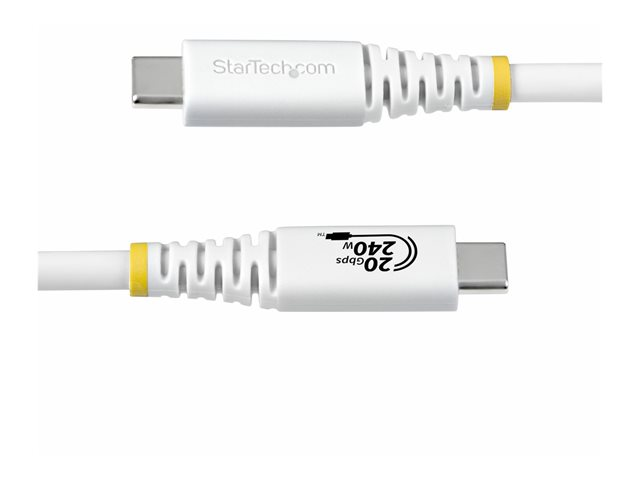 Produktbeskrivning StarTech.com - USB typ C-kabel - USB-C till USB-C - 2 m Typ USB typ C-kabel Teknik Koaxial Egenskaper 4K120Hz stöd, robust, utökat effektområde (EPR), Stöd för Power Delivery 3,1, flexibel, EMI-skydd, e-markörchip, HDR-stöd, HDR10-stöd, High Bit Rate 3 (HBR3), 20 Gb datahastighet, Display Stream Compression (DSC), upp till 240 W strömleverans, DisplayPort 1.4 med DSC, stöd för DisplayPort alt-läge 1,4 Kabellängd 2 m Kontaktdon 24 pin USB-C - hane Kontakt (andra änden) 24 pin USB-C - hane Standarder som följs USB4 / Thunderbolt 3 / Thunderbolt 4 / DisplayPort 1.4 Färg Vit -