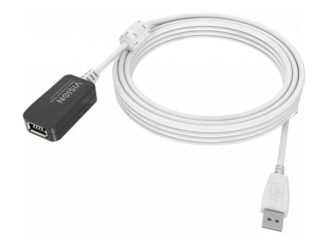 Produktbeskrivning Vision Techconnect - USB-förlängningskabel - USB till USB - 5 m Typ USB-förlängningskabel Teknik Skärmad Egenskaper Aktiv kabel, järnkärna Kabellängd 5 m Kontaktdon 4-stifts USB typ A - hona Kontakt (andra änden) 4-stifts USB typ A - hane Standarder som följs USB / USB 2.0 Färg Vit -