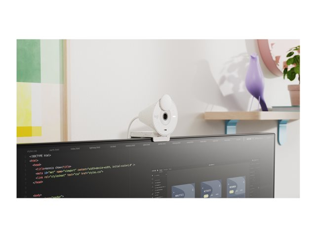 Produktbeskrivning Logitech BRIO 300 - webbkamera Typ av enhet Webbkamera Ljud Ja: inbyggd mikrofon Dimensioner (BxDxH) 5.31 cm x 4.5 cm x 6.563 cm Vikt 74.6 g Färg Offwhite Anslutningsteknik Kabelanslutning Kamera Färg Max upplösning 1920 x 1080 Bildhastighet (max) 30 frames per second Videoformat 1080p, 720p Bildsensortyp 2 MP Fokuseringsjustering Fast fokus Gränssnitt USB-C Mjukvarucertifiering Certifierad för Microsoft-teams, Optimerat för Google Meet, Zoomcertifierad Medföljande kablar 1 - USB-kabel - integrerad - 1.5 m Egenskaper RightLight 2-teknik, automatisk ljuskorrigering, mikrofon med brusreducering, glaslins, inbyggd sekretesslutare Tillverkarens garanti 2 års garanti Fungerar med Chromebook Ja -