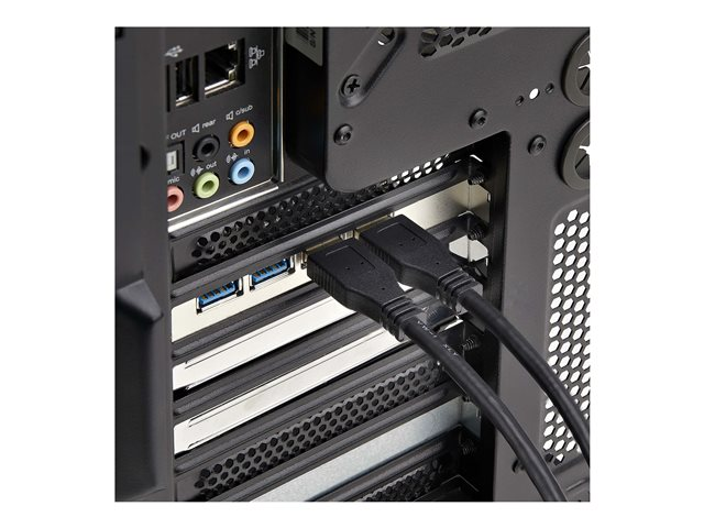 Produktbeskrivning StarTech.com 4-Port USB-A PCIe Card, USB 3.2 5Gbps, 4x USB Controllers - USB-adapter - PCIe 2.0 x4 - USB 3.2 Gen 1 x 4 Typ av enhet USB-adapter Formfaktor Instickskort Gränssnittstyp (buss) PCI Express 2.0 x4 Version av PCI-specifikation PCIe 2.0 Portar USB 3.2 Gen 1 x 4 Dimensioner (BxDxH) 1.9 cm x 16.9 cm x 12 cm Vikt 100 g Datalänkprotokoll USB 3.2 Gen 1 Dataöverföringshastighet 5 Gbps Processor Renesas / Diodes Incorporated UPD720202 / PI7C9X2G608 Standarder som följs USB 3.2 Gen 1 Färg Svart Systemkrav Microsoft Windows 7 / 8 / 8.1 / 10 / 11, Microsoft Windows Server 2022, Microsoft Windows Server 2019, Microsoft Windows Server 2016, Microsoft Windows Server 2012 R2, Microsoft Windows Server 2008 R2, Linux 2.6.31 eller senare endast LTS-versioner only Tillverkarens garanti 2 års garanti Designat för P/N: FCREADMICRO3V2, USB315AC1M, USB3S2SAT3CB -