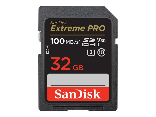 Produktbeskrivning SanDisk Extreme Pro - flash-minneskort - 32 GB - SDHC UHS-I Produkttyp Flash-minneskort Formfaktor SDHC UHS-I minneskort Minneskapacitet 32 GB Hastighet Video Class V30 / UHS-I U3 / Class10 Medföljande programvara RescuePRO Deluxe (2 års nedladdning) Tillverkarens garanti Begränsad livstidsgaranti (Tyskland, Kanada och regioner som inte godkänner begränsad livstidsgaranti - 30 år) -