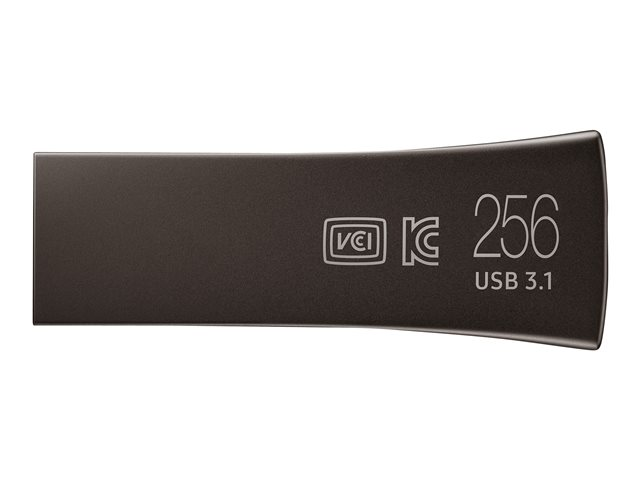 Produktbeskrivning Samsung BAR Plus MUF-256BE4 - USB flash-enhet - 256 GB Produkttyp USB flash-enhet Gränssnittstyp USB 3.1 Gen 1 Minneskapacitet 256 GB Färg Titan gray Tillverkarens garanti 5 års garanti -