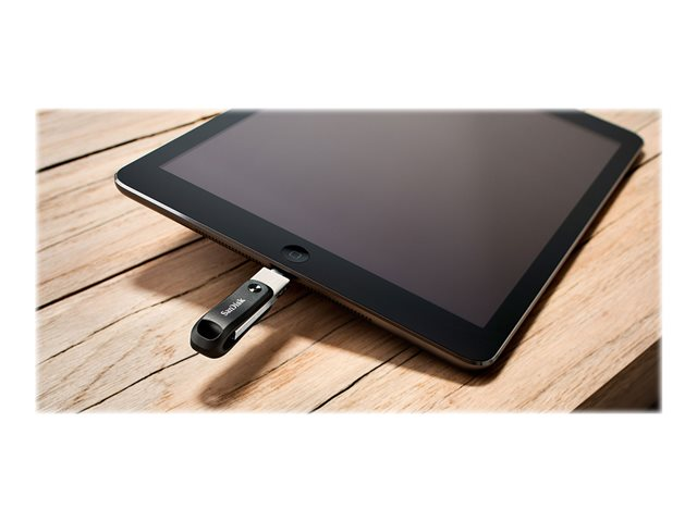 Produktbeskrivning SanDisk iXpand Go - USB flash-enhet - 256 GB Produkttyp USB flash-enhet Gränssnittstyp USB 3.0 / Apple Lightning Minneskapacitet 256 GB Operativsystem erfordras Apple MacOS X 10.8 eller senare, Microsoft Windows 7 / 8 / 10, Apple iOS 10.0.2 eller senare Tillverkarens garanti 2 års garanti -