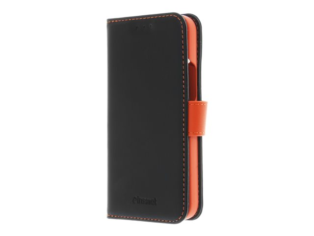 Produktbeskrivning Insmat Exclusive Flip Case - vikbart fodral för mobiltelefon Typ av produkt Vikbart fodral för mobiltelefon Material Genuint läder, polykarbonat, bomullssömmar, kartong+papper Färg Svart och orange Designat för Apple iPhone 14 -