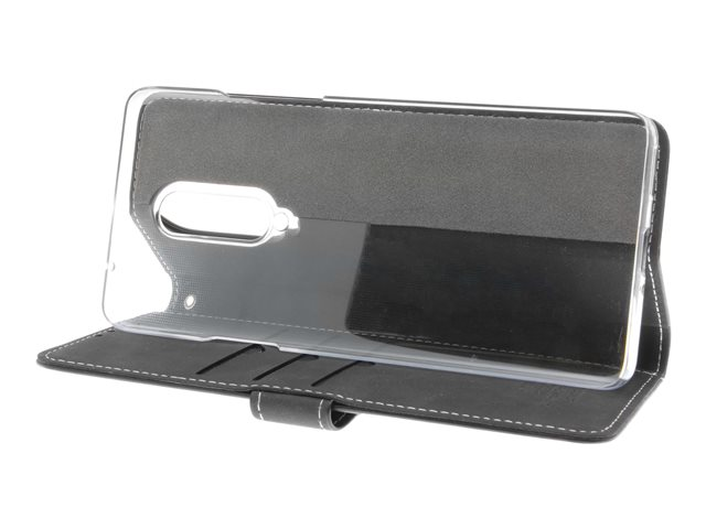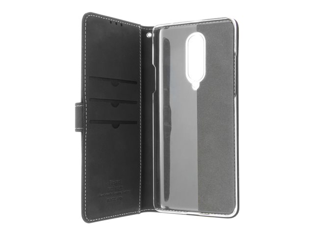 Vikbart fodral för mobiltelefon - genuint läder, papper, kartong, polykarbonat, aluminiumfolie - svart - för OnePlus 8