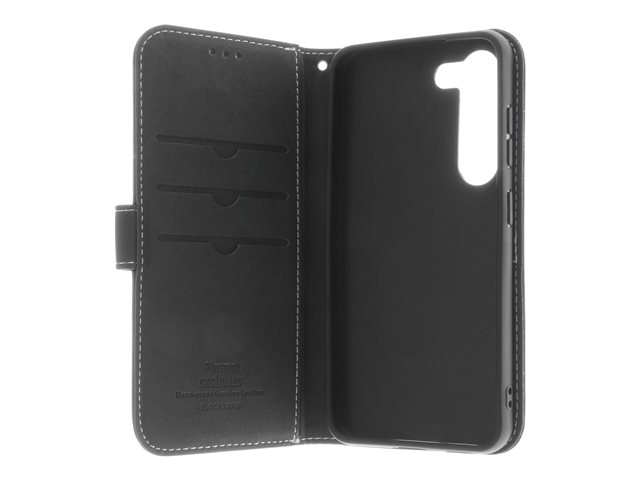 Produktbeskrivning Insmat Exclusive - vikbart fodral för mobiltelefon Typ av produkt Vikbart fodral för mobiltelefon Material Genuint läder, papper, polyuretan, kartong, bomull, aluminiumfolie, brons, termoplastisk polyuretan (TPU) Färg Svart Designat för Samsung Galaxy S23 -