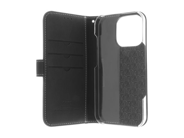 Produktbeskrivning Insmat Exclusive - vikbart fodral för mobiltelefon Typ av produkt Vikbart fodral för mobiltelefon Material Genuint läder, kartong+papper+aluminiumfolie, polykarbonat (PC), bomullssömmar Färg Svart Designat för Apple iPhone 16 Pro -