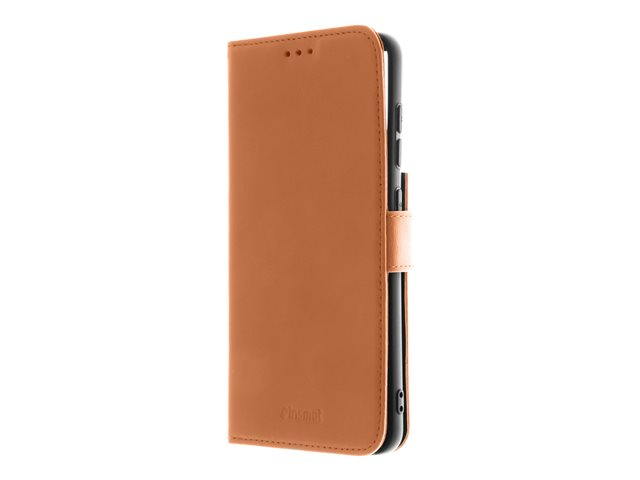 Produktbeskrivning Insmat Premium - vikbart fodral för mobiltelefon Typ av produkt Vikbart fodral för mobiltelefon Material Genuint läder, termoplastisk polyuretan (TPU), kartong+papper+aluminiumfolie, bomullssömmar Färg Brun Designat för Samsung Galaxy S21 FE 5G -