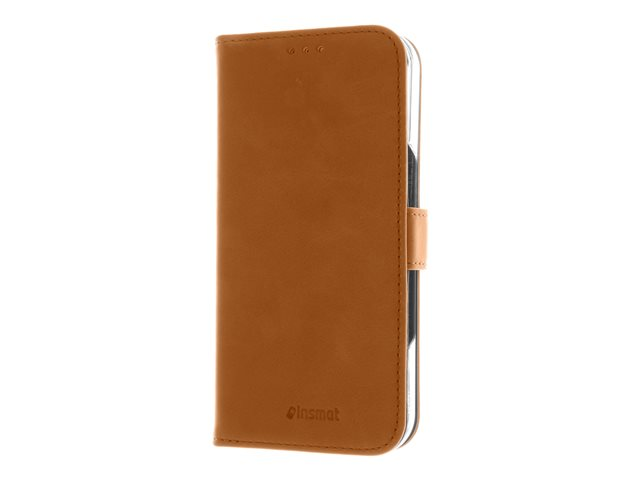 Produktbeskrivning Insmat Premium - vikbart fodral för mobiltelefon Typ av produkt Vikbart fodral för mobiltelefon Material Genuint läder, kartong+papper+aluminiumfolie, polykarbonat, bomullssömmar Färg Brun Designat för Apple iPhone 16 Pro -