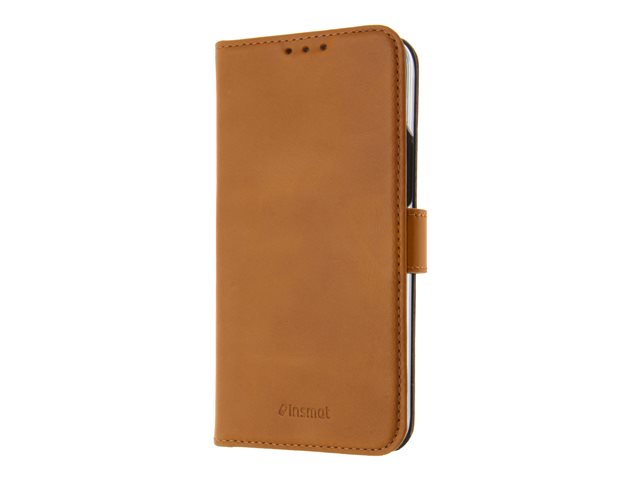 Produktbeskrivning Insmat Premium - vikbart fodral för mobiltelefon Typ av produkt Vikbart fodral för mobiltelefon Material Genuint läder, papper, kartong, polykarbonat, bomull, aluminiumfolie Färg Brun Designat för Apple iPhone 13 -