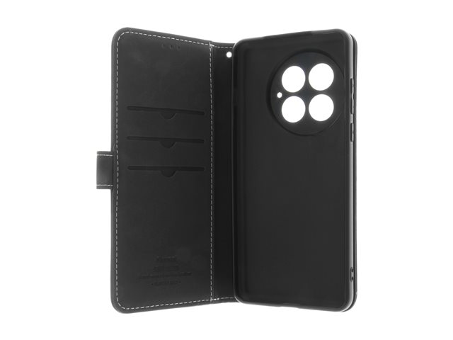 genuint läder, kartong+papper+aluminiumfolie, termoplastisk polyuretan (TPU), bomullssömmar - svart - för OnePlus 13
