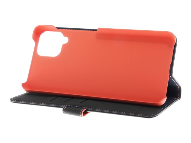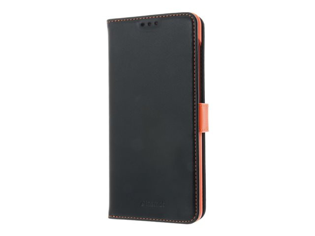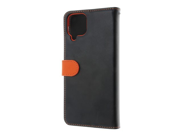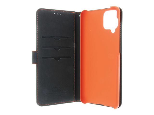 Produktbeskrivning Insmat - vikbart fodral för mobiltelefon Typ av produkt Vikbart fodral för mobiltelefon Material Genuint läder, termoplastisk polyuretan (TPU), polyuretanklädsel Färg Svart, orange, galvaniserad bronsring Designat för Samsung Galaxy A12 -