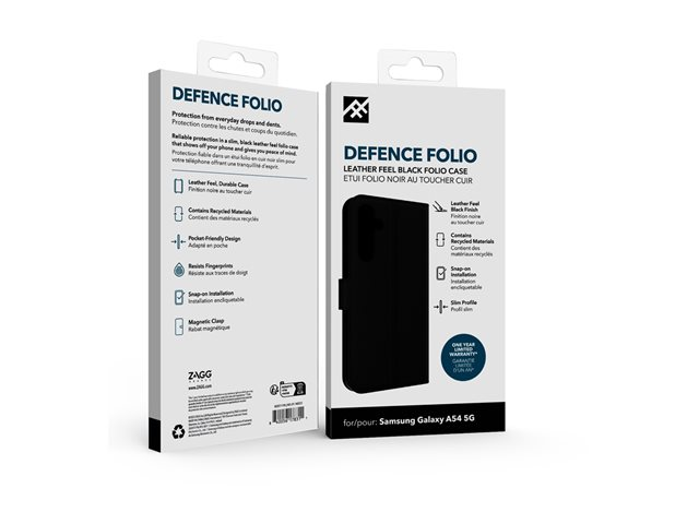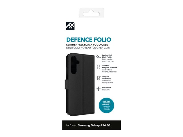 Produktbeskrivning iFrogz Defence - skyddsfodral - vikbart fodral för mobiltelefon Typ av produkt Skyddsfodral vikbart fodral för mobiltelefon Material Läder Färg Svart Tillverkarens garanti 1 års garanti Designat för Samsung Galaxy A54 -
