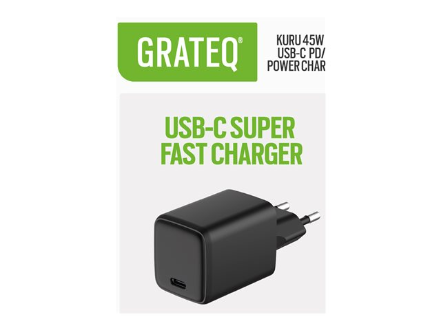 Produktbeskrivning GRATEQ Kuru strömadapter - GaN - 24 pin USB-C - 45 Watt Typ av produkt Strömadapter Utformad för Surfplatta, mobiltelefon, smartklocka Färg Svart Typ av utkontakt 24 pin USB-C Nätspänning Ac 100- 240 V (50/60 Hz) Tillförd spänning 3.3 - 11 / 3.3 - 16 / 3.3 - 21 / 5 / 9 / 15 / 20 V Max elektrisk ström 4.05 A Snabbladdningsteknik PD/PPS, Samsung Super Fast Charge 2.0 Effekt 45 Watt Strömenhetsinformation - 24-stifts USB-C - 45 W Strömenhetens driftlägen PD (USB-C) - 15 W - 5 V - 3 A