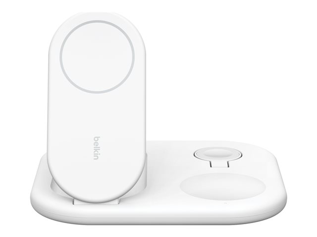 Trådlöst laddställ - magnetisk, hopfällbar, med Qi2 + växelströmsadapter - 15 Watt - Fast Charge - vit