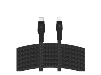 Produktbeskrivning Belkin BoostCharge Lightning-kabel - 3 m Kabel Lightning-kabel Kabellängd 3 m Färg Svart Kontaktdon USB-C - hane Kontakt (andra änden) Lightning - hane Egenskaper Flätad -