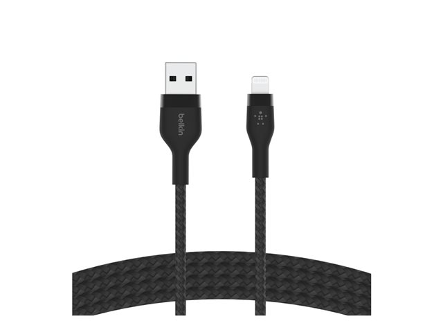 Produktbeskrivning Belkin BoostCharge Lightning-kabel - 2 m Kabel Lightning-kabel Kabellängd 2 m Färg Svart Kontaktdon USB - hane Kontakt (andra änden) Lightning - hane Egenskaper Flätad -