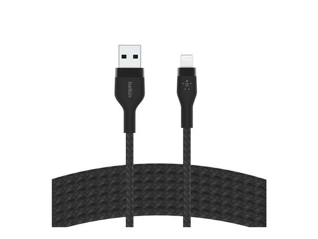 Produktbeskrivning Belkin BoostCharge Lightning-kabel - 3 m Kabel Lightning-kabel Kabellängd 3 m Färg Svart Kontaktdon USB - hane Kontakt (andra änden) Lightning - hane Egenskaper Flätad -