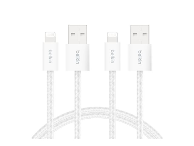Produktbeskrivning Belkin BoostCharge Lightning-kabel - MFI-certifierad - 1.5 m Kabel Lightning-kabel Förpackad kvantitet 2 (specificationerna gällerenskild post) Kabellängd 1.5 m Färg Vit Kontaktdon USB typ A - hane Kontakt (andra änden) Lightning - hane Egenskaper Trasselfri, flätad Tillverkarens garanti 2 års garanti -