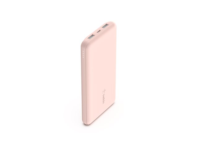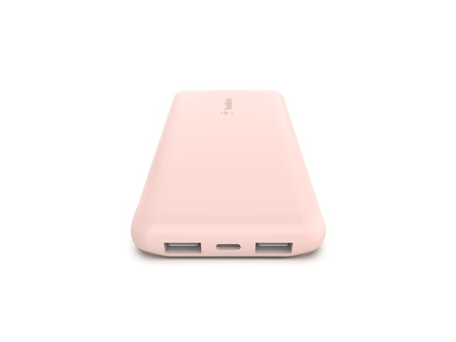 Produktbeskrivning Belkin BoostCharge power bank - 24 pin USB-C, 2 x USB - 18 Watt Typ av produkt Power bank Utformad för Surfplatta, mobiltelefon Dimensioner (BxDxH) 13.183 cm x 6.833 cm x 1.575 cm Vikt 222 g Färg Guldrosa Typ av utkontakt Total 3: 24 pin USB-C, 2 x USB Batteri 10000 mAh Effekt 18 Watt Kablar USB-A till USB-C strömkabel Tillverkarens garanti 2 års garanti -