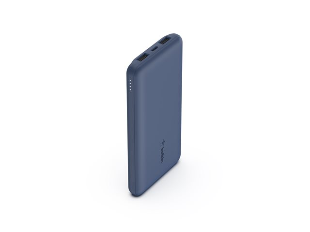 Produktbeskrivning Belkin BoostCharge power bank - 24 pin USB-C, 2 x USB - 18 Watt Typ av produkt Power bank Utformad för Surfplatta, mobiltelefon Dimensioner (BxDxH) 13.183 cm x 6.833 cm x 1.575 cm Vikt 222 g Färg Blå Typ av utkontakt Total 3: 24 pin USB-C, 2 x USB Batteri 10000 mAh Effekt 18 Watt Kablar USB-A till USB-C strömkabel Tillverkarens garanti 2 års garanti -