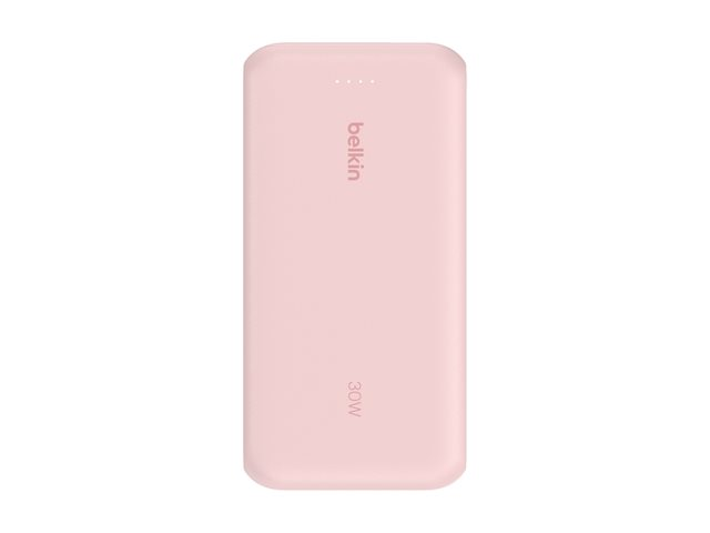 Produktbeskrivning Belkin BoostCharge power bank - med integrerad kabel - 2 x USB-C, USB - 30 Watt - MFI-certifierad Typ av produkt Power bank Utformad för Surfplatta, mobiltelefon Dimensioner (BxDxH) 7.62 cm x 15.4 cm x 2.51 cm Vikt 395 g Färg Rosa Typ av utkontakt Total 3: 2 x USB-C, USB Snabbladdningsteknik Power Delivery Batteri 20000 mAh Effekt 30 Watt Strömenhetsinformation Strömbank - 4-stifts USB typ A - utmatning - 18 W