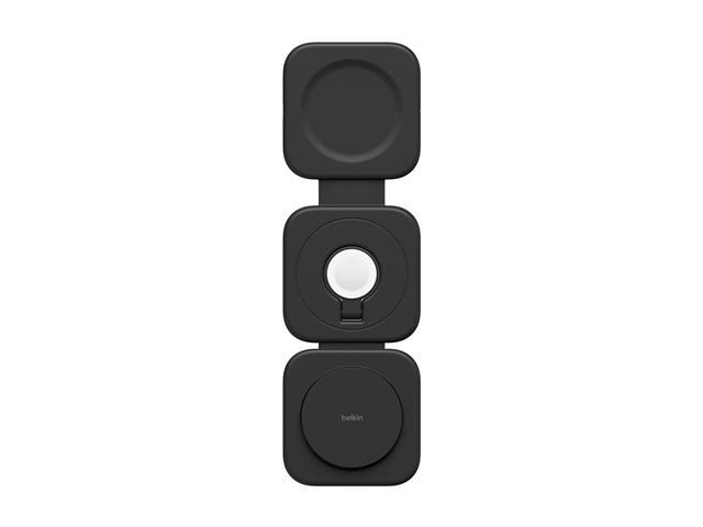 Produktbeskrivning Belkin BoostCharge Pro 3-in-1 trådlös laddningsplatta - magnetisk med Qi2 - + växelströmsadapter - 15 Watt Typ av produkt Trådlös laddningsplatta + växelströmsadapter Utformad för Mobiltelefon, smartklocka, fjärrlösa öronsnäckor Dimensioner (BxDxH) 8.2 cm x 16.8 cm x 1.15 cm Vikt 340 g Nätspänning AC 100-240 V Tillförd spänning 5 / 9 /12 / 15 V Max elektrisk ström 3 A Standarder för trådlös laddning Qi2, Fast Wireless Charging Effekt 15 Watt Strömenhetsinformation Trådlös laddningsplatta - magnetisk trådlös platta - 15 W