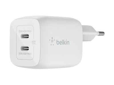 Strömadapter - PPS- och GaN-teknik - 45 Watt - Fast Charge, PD 3.0 - 2 utdatakontakter (2 x USB-C) - vit