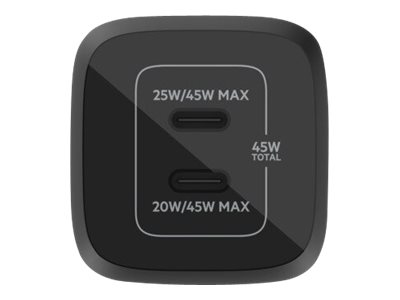 Strömadapter - PPS- och GaN-teknik - 45 Watt - 3 A - Fast Charge, PD 3.0 - 2 utdatakontakter (2 x USB-C) - svart