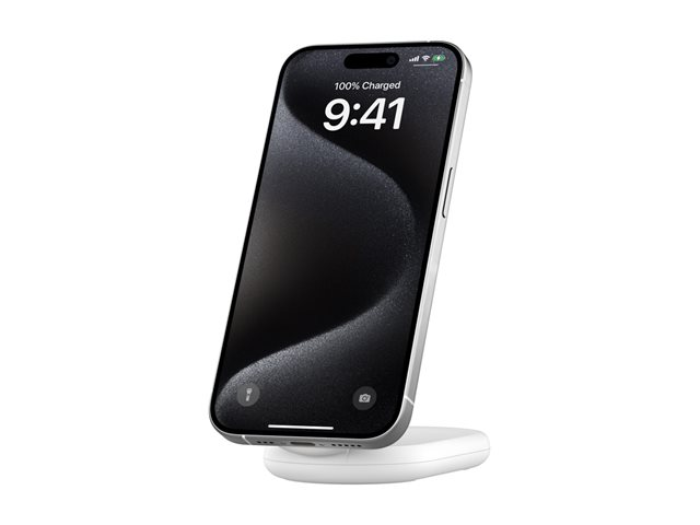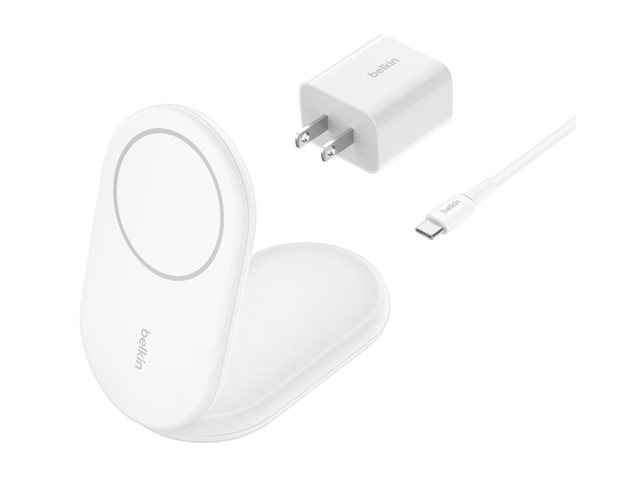 magnetisk, hopfällbar, med Qi2 + växelströmsadapter - 15 Watt - 3 A - Fast Charge, Strömmatning 3.1 - vit