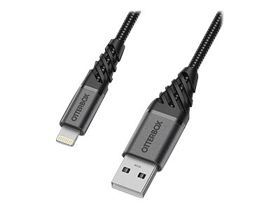 Produktbeskrivning OtterBox Premium - Lightning-kabel - Lightning / USB - 1 m Kabel Lightning-kabel - Lightning / USB Kabellängd 1 m Färg Mörk asksvart Kontaktdon USB - hane Kontakt (andra änden) Lightning - hane Märkström 3 A Egenskaper Klammer, flätad, eloxiderat aluminiumhölje, rugged Tillverkarens garanti Begränsad livstidsgaranti -