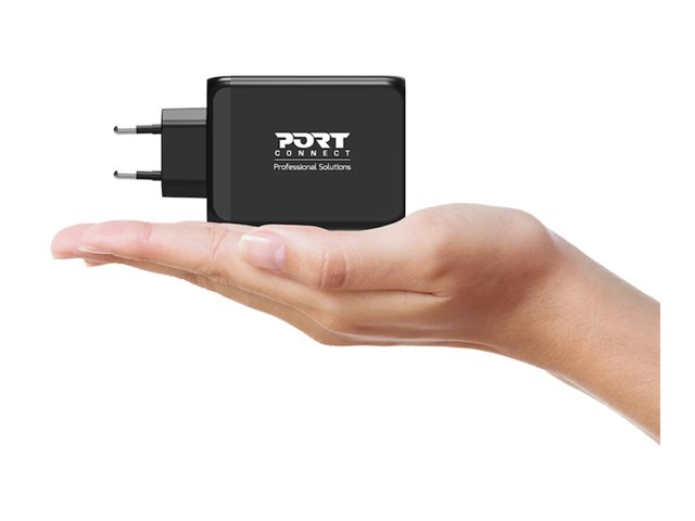 Produktbeskrivning PORT Connect strömadapter - GaN - USB typ A, 3 x USB-C - 130 Watt Typ av produkt Strömadapter Utformad för Surfplatta, mobiltelefon, anteckningsbok Dimensioner (BxDxH) 12.3 cm x 2.95 cm x 6.1 cm Vikt 229 g Lokalisering Europa Typ av utkontakt Total 4: USB typ A, 3 x USB-C - på kabel: USB-C Nätspänning AC 100-240 V (50/60 Hz) Max elektrisk ström 5 A Snabbladdningsteknik Power Delivery, Qualcomm Quick Charge 3.0 Effekt 130 Watt Strömenhetens driftlägen USB-C1 + USB-C2 - 65 W + 65 W