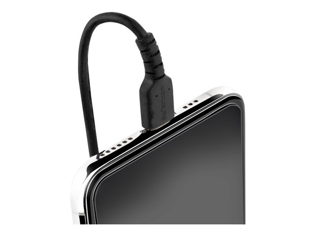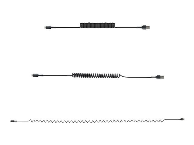 StarTech.com 1 m USB till Lightning-kabel, MFi-certifierad, iPhone-spiralladdarkabel, svart, TPE-mantel med slitstark aramidfiber, kraftig Lightning-spiralkabel